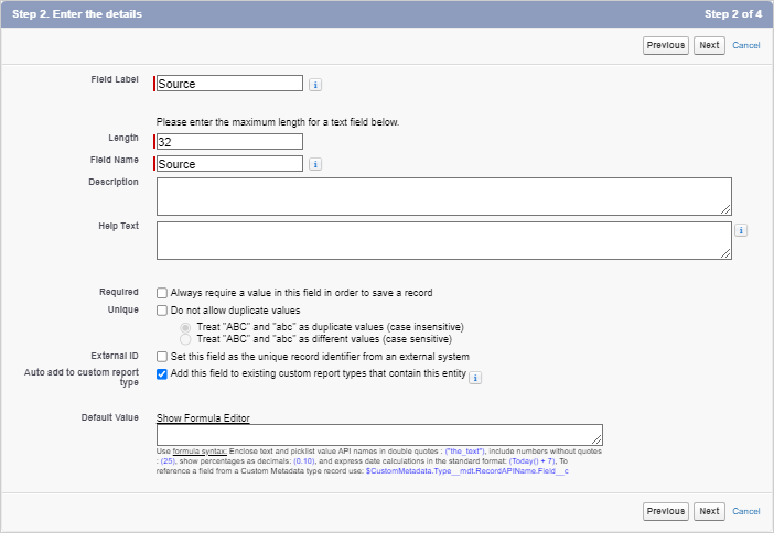 Übernehmen Sie die Standardeinstellungen, indem Sie auf "Weiter" klicken, bis Sie speichern oder ein neues Feld hinzufügen können.