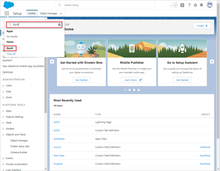 모든 설정이 올바르게 완료되면, Lightning Page에 간단한 간트 데모가 표시됩니다.