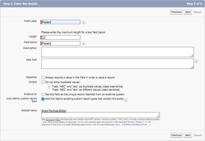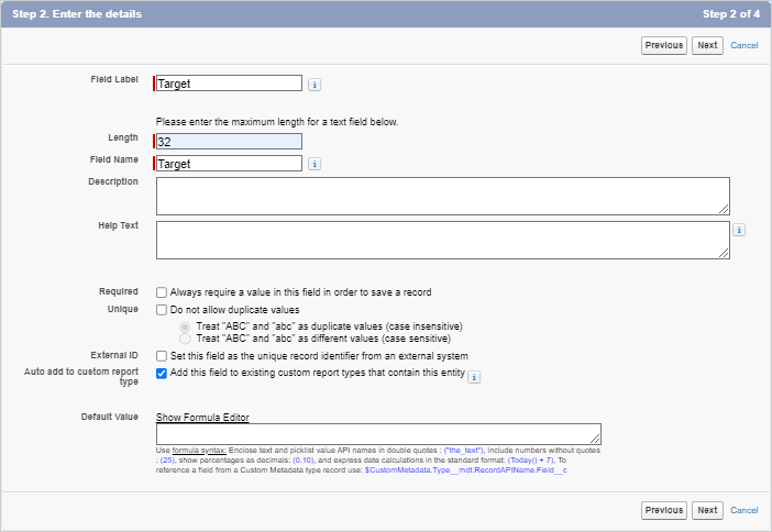 Примите настройки по умолчанию, нажимая "Next", пока не сможете сохранить или добавить новое поле.